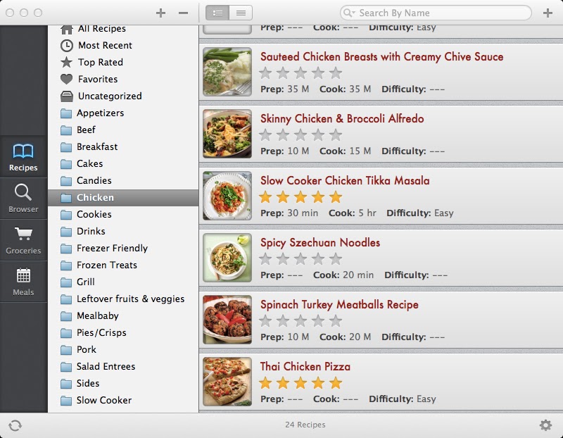 Here’s what the screen looks like opened up to my “Chicken” recipes: